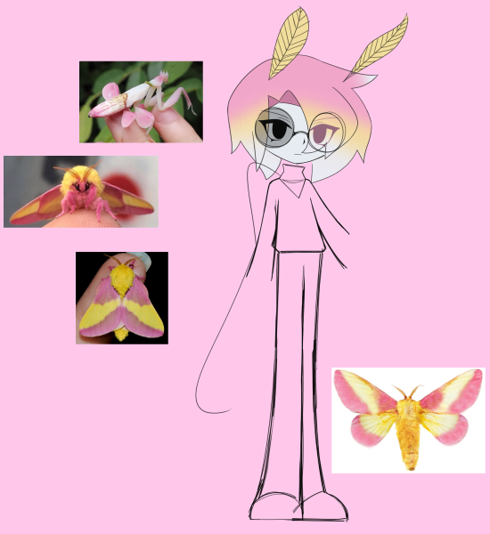 This character is based on a rosy maple moth! They will have a dual identity with orchid mantis!