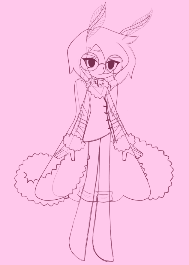 This has a limited colour palette! I want to let this have only pink, yellow, and white if I can (and shades of those colors). Despite the chosen palette of mostly bright colours, Eichi tells me the WIPs I show them make this look like a villain-aligned character...